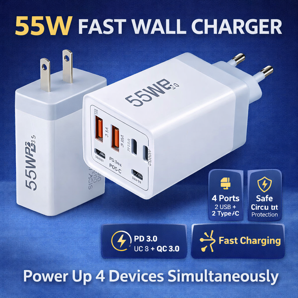 Whether you need a reliable charger for daily use or a multi-device charging solution, this 55W fast charger delivers performance, safety, and convenience.