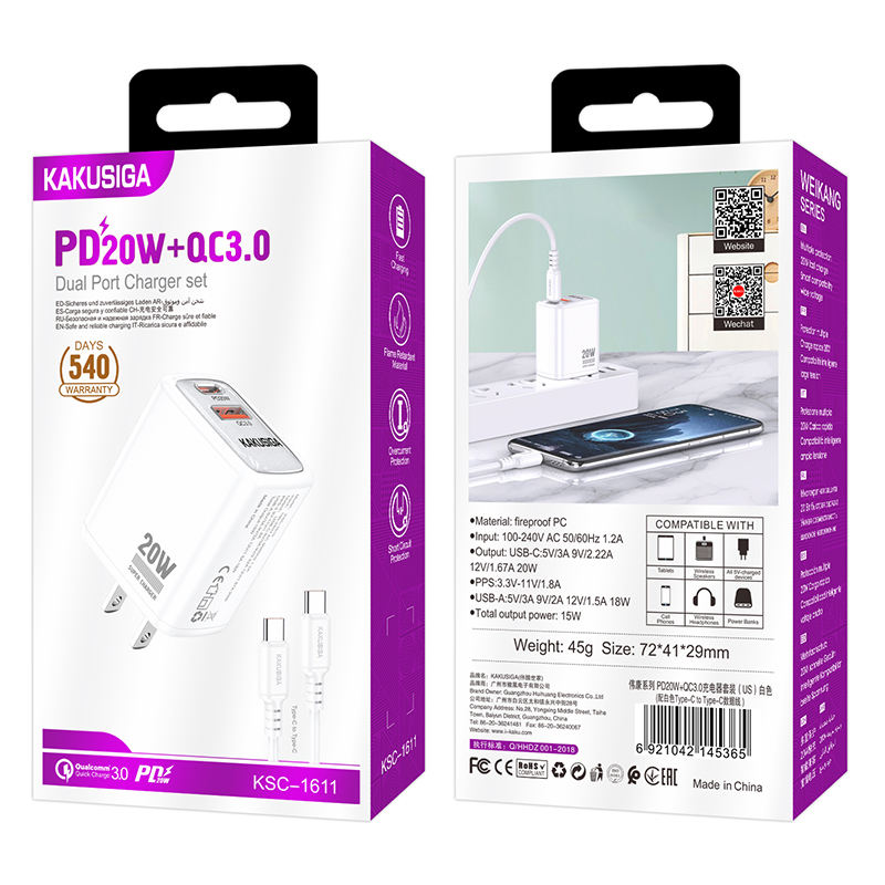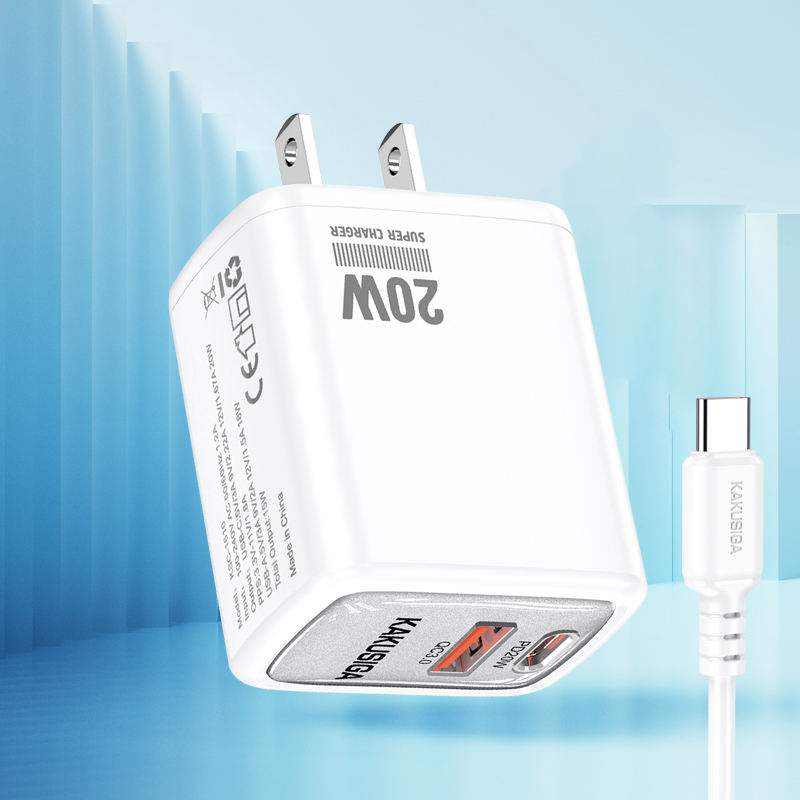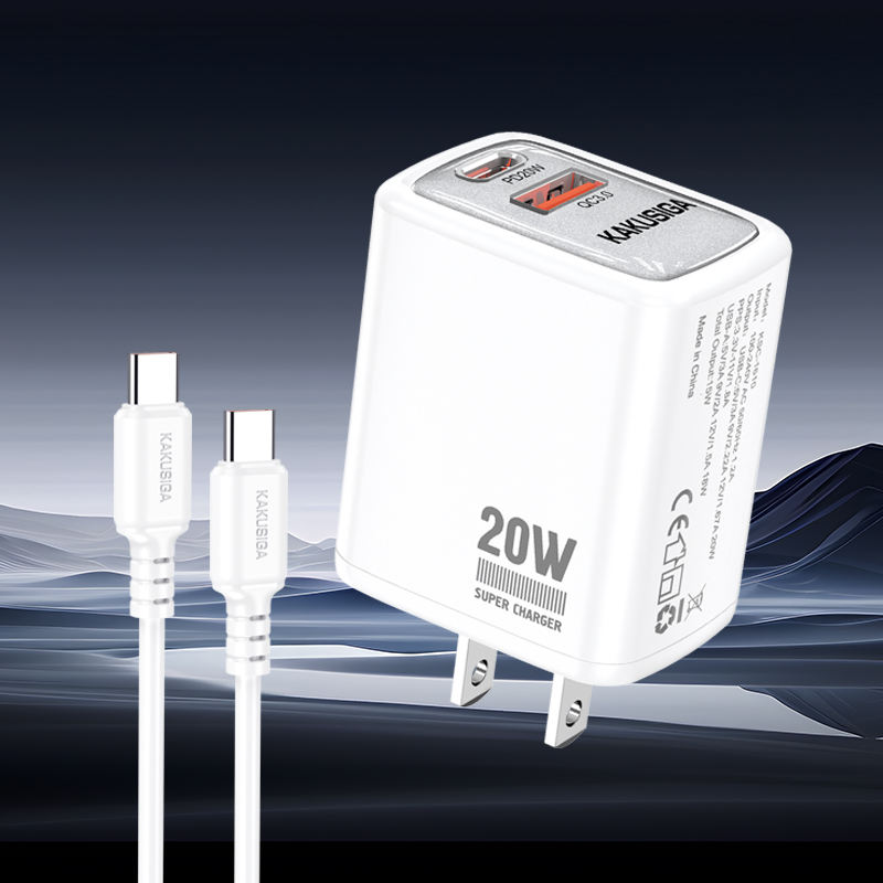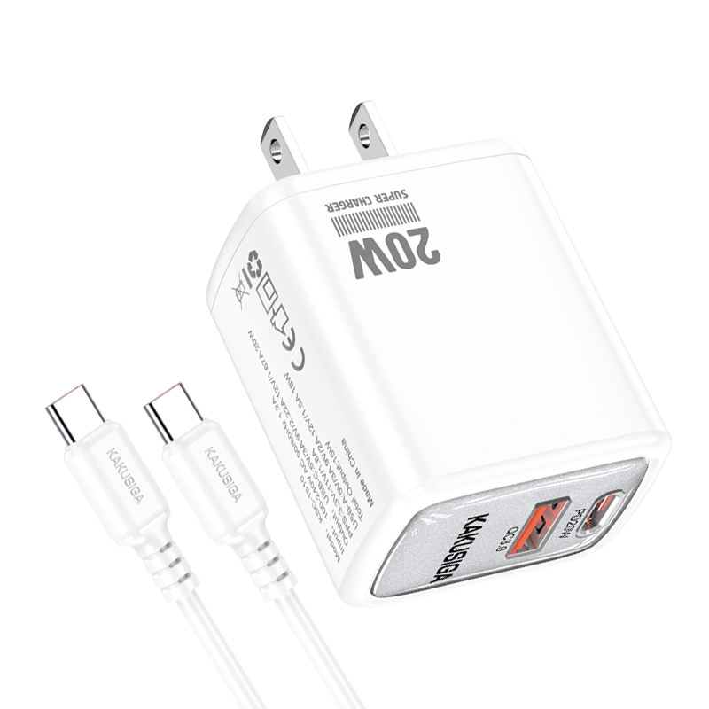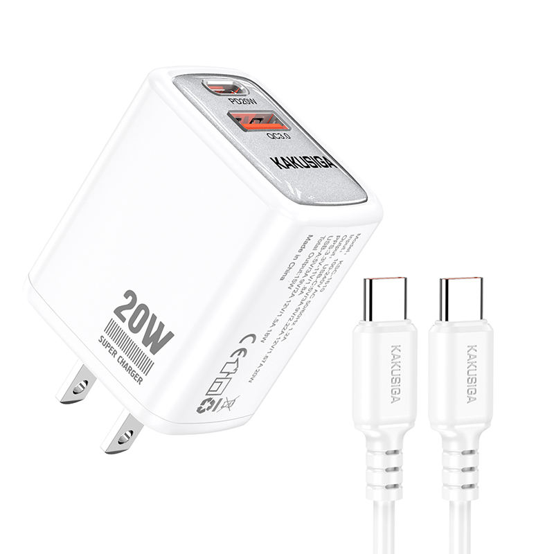 The KAKUSIGA PD20W + QC3.0 Fast Charger offers high-speed charging with dual ports (USB-C & USB-A). Built with advanced safety protection and fireproof material, it ensures safe and efficient charging for smartphones, tablets, and other devices. Comes with a Type-C to Type-C cable for convenience.
