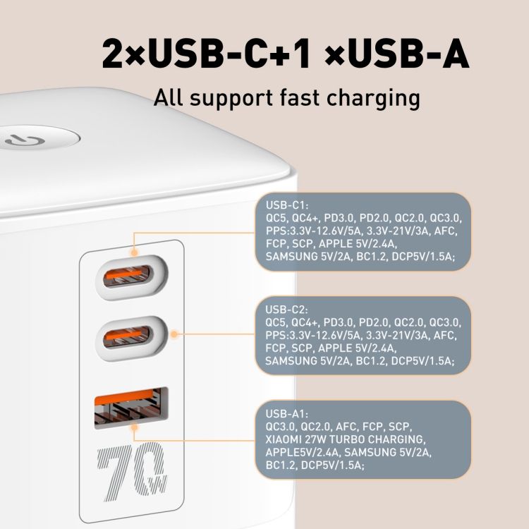 ✔ 3 USB Ports (1 USB-A + 2 Type-C)
