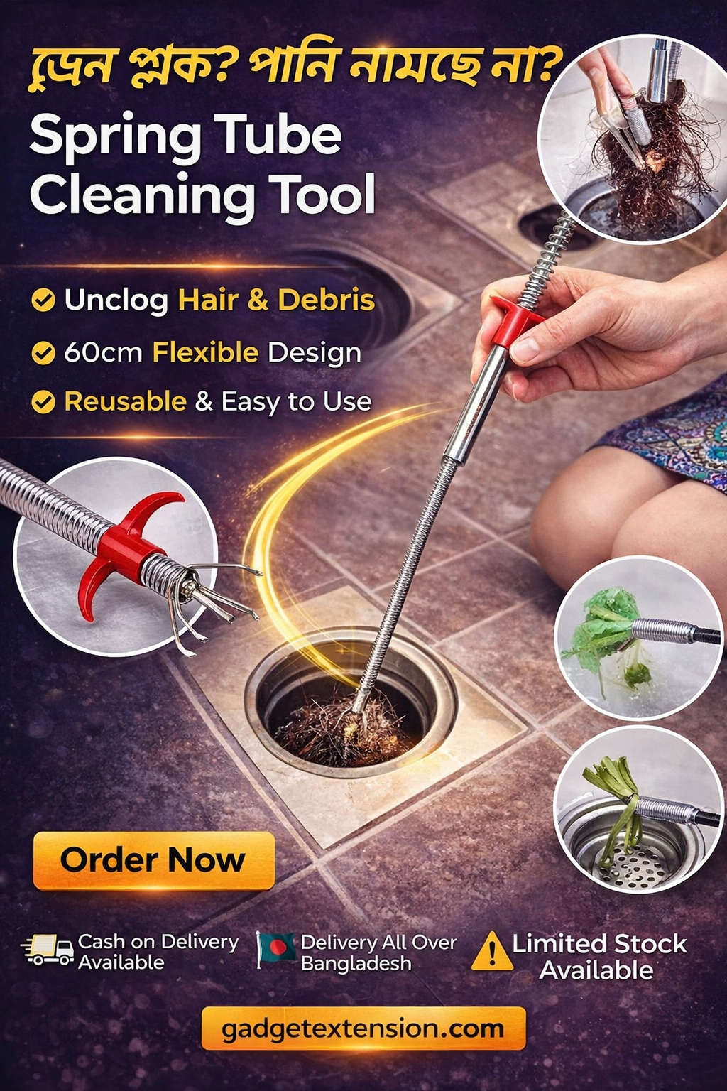 এই Spring Tube Cleaning Tool দিয়ে খুব সহজেই পাইপের ভেতরের চুল, ময়লা ও ব্লক পরিষ্কার করতে পারবেন।
