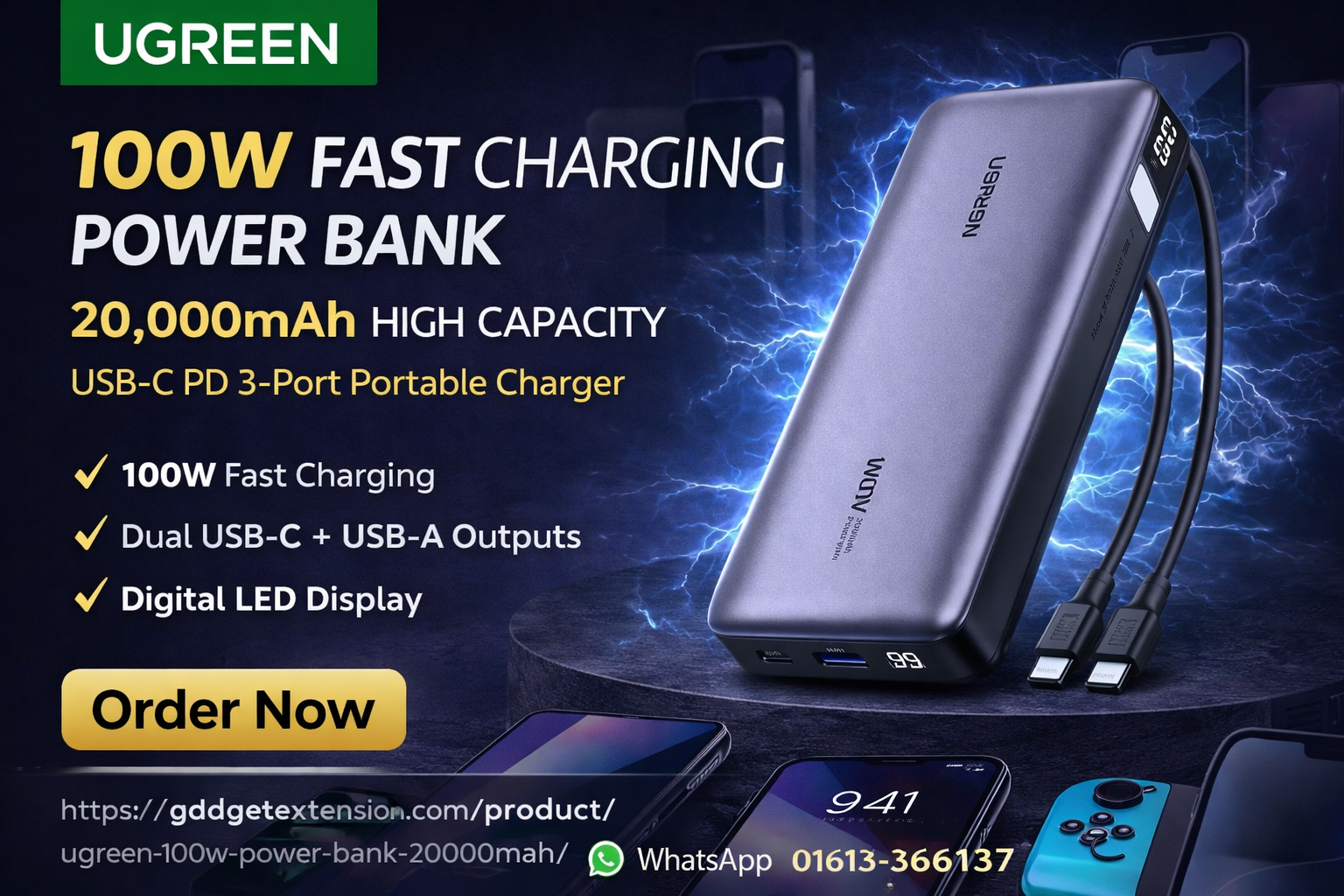 Stay charged wherever you go with the powerful UGREEN 100W Power Bank (PB720). Designed for modern users, this high-performance power bank delivers fast and efficient charging for all your essential devices.
